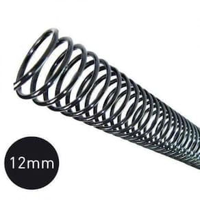 Espirais para Encadernação Preto 12mm 70 Folhas 100 und - Espiral plástico Preto fabricado em PVC Semi-Rígido. - Diâmetro de 12mm para encadernar 70 folhas (24 kg / 75gr), com comprimento de 33cm. - Fio de 1,6mm. - Utilizado para encadernação de diversos fins, tais como apostilas, listas de preços, relatórios, cadernos, agendas, livros didáticos e etc. - Pacote acompanha 100 unidades de espirais. Produto plataforma Plast.