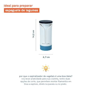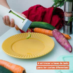 Esse é o espiralizador de vegetais da OIKOS. Ele vem para facilitar o preparo do seu espaguete de legumes! Com duas opções de corte, é possível montar filamentos em tiras e espirais, direto na panela ou no prato. Basta encaixar o legume e girar o espiralizador, sendo necessário apenas trocar a base de lado para obter um corte diferente.