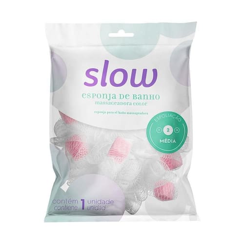 A Esponja de Banho Massageadora Color Slow foi desenvolvida especialmente para auxiliar na higiene e no cuidado com o corpo. É ideal para utilizar no ritual diário do banho, com sabonetes líquidos e géis de banho que formam uma deliciosa espuma relaxante que limpa profundamente o corpo. Além disso, proporciona uma esfoliação média na pele, ativando a circulação sanguínea da e estimulando a renovação , para uma pele macia e renovada. Seu design diferenciado possui cubos de esponjas distribuídos no interior do nylon, potencializando a espumação e deixando o banho mais gostoso e refrescante. Com pendurador, facilita a secagem e o armazenamento da esponja no banheiro. Disponível na cor branca com cubos de esponjas em rosa.