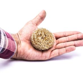 Esponja latão limpa limpa buchabrilho Esponja abrasiva altamente eficiente para limpeza pesada, muito utilizada para dar brilho em panelas . Ajuda na remoção de gorduras e sujeiras mais difíceis. Característica Material: latão Cor: amarelo Dimensões aproximadas Altura: 02 cm Diâmetro: 10 cm Marca: Aresio/Bucha Brilho Ean: 7896683300031