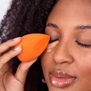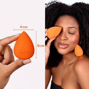 Umedeça a esponja antes de usar para um acabamento ainda mais natural e para evitar o desperdício de produto. Aplique uma pequena quantidade de base, corretivo ou pó na esponja. Dê leves batidinhas na pele, espalhando o produto uniformemente. Utilize aesponja para áreas menores e de difícil acesso como detalhes, correções pontuais e áreas de difícil acesso (como cantos dos olhos e abas do nariz).