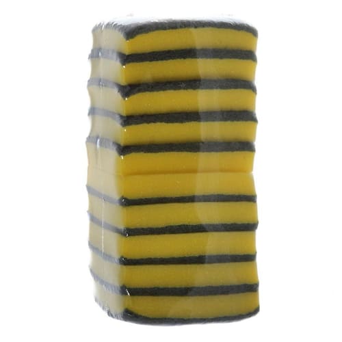 A Esponja Dupla Face Multiuso Scotch-Brite 3M é líder de vendas no Brasil. Pois, possui maior durabilidade e poder de limpeza, sendo a solução ideal para a remoção de sujeiras, até as mais difíceis nos mais diversos tipos de superfície. Obtenha melhores resultados, deixando sua louça sempre limpa gastando menos tempo e energia! Composição: Espuma de poliuretano e fibra sintética com mineral abrasivo. Recomendações de Uso: - Limpeza geral em cozinhas industriais, restaurantes e similares, indústrias de alimentos, hotéis, hospitais, escritórios etc; - Possui dupla ação, o lado verde atua na limpeza da sujeira pesada, enquanto o lado com a espuma amarela limpa a sujeira leve de peças delicadas como porcelanas, vidros e etc; - Pode substituir a palha e lã de aço, escovas e outros no trabalho de remover a sujeira; - Durante a limpeza lavar/enxaguar as Esponjas de Limpeza em água potável corrente; - Utilizar detergente para dissolver gorduras e sujeiras mais pesadas sempre que necessário; - Após a utilização, retirar o excesso de água das Esponjas de Limpeza e acondicionar as mesmas em local apropriado limpo, seco e protegido ; - Recomenda-se Cuidado ao usar o produto em superfícies delicadas, pois pode provocar riscos. Medida unitária: - Altura: 2,0 cm - Largura: 7,5cm - Comprimento: 11 cm Item incluso: 01 Embalagem com 10 unidades Ean: 7891040094813