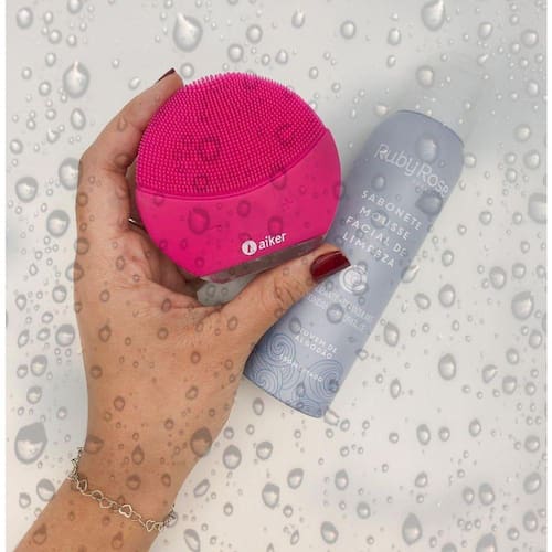 -escova de limpeza facial para todos os tipos de pele. -elimina 99,5% da oleosidade em apenas 1 minuto. -possui filamentos de silicone de diferentes espessuras que removem as impurezas retidas ao longo do dia com sua tecnologia que libera até 8 mil vibrações por minuto, que garante a remoção das células mortas e a purificação dos poros de maneira suave e completa para uma pele mais macia e luminosa. Ação -tecnologia t-sonic: eliminam as impurezas acumuladas nos poros por meio de até 8 mil pulsações que limpam a pele profundamente Conselho de aplicação -aplique o produto de limpeza no rosto molhado. -molhe a escova de limpeza facial e ligue o aparelho. -faça movimentos circulares durante 1 minuto. -enxágue o rosto e a escova em seguida. -use 2 vezes ao dia. Itens incluso: 1-aparaelho 1-cabo usb Sabonete ruby rose nuvem de algodão Sabonete mousse facial de limpeza nuvens de algodão 150ml-ruby rose o sabonete mousse facial de limpeza nuves de algodão ruby rose remove a maquiagem e limpa a pele profundamente. Com ação revitalizante e antioxidante, promove uma pele hidratada, limpa e bonita. A espuma cremosa tem o toque suave e aveludado e serve para todos os tipos de pele. O sabonete mousse facial de limpeza é um demaquilante cremoso e aveludado que remove os resíduos da maquiagem e promove uma pele limpa, hidratada e bonita.