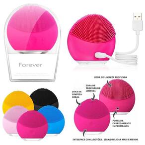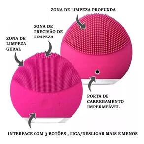 Esponja Massageadora Para Limpeza Facial Eletrica Escova de limpeza facial para todos os tipos de pele. Elimina 99,5% da oleosidade em apenas 1 minuto.Possui filamentos de silicone de diferentes espessuras que removem as impurezas retidas ao longo do dia com sua tecnologia que libera até 8 mil vibrações por minuto, que garante a remoção das células mortas e a purificação dos poros de maneira suave e completa para uma pele mais macia e luminosa.AçãoTecnologia TSonic: eliminam as impurezas acumuladas nos poros por meio de até 8 mil pulsações que limpam a pele profundamenteConselho de AplicaçãoAplique o produto de limpeza no rosto molhado. Molhe a escova de limpeza facial e ligue o aparelho. Faça movimentos circulares durante 1 minuto. Enxágue o rosto e a escova em seguida. Use 2 vezes ao dia. Design prático e resistente a água não molhe a entrada de energia, onde carrega . A parte da escova é impermeável e lavável pode ser limpa para evitar a acumulação de sujeira.