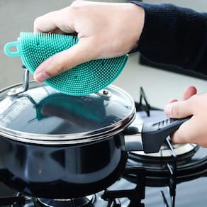 Descrição: Contém: 01 Esponja Louça Silicone PG65 Prana Não fica com cheiros como as esponjas tradicionais e dura muito mais. Uso: -Lava louças, talheres, panelas etc, sem riscar a superfície, graças as cerdas macias de silicone. Especialmente superfícies que não podem ser riscadas, com antiaderente, ou outras camadas delicadas, -Pega refratários e panelas quentes, -Apoio para panelas e -Abridor de potes. Limpeza: -Lave em água corrente, fervente ou máquina de lavar louças para tirar as bactérias. Medidas Aproximadas: Circunferência: 11,5 cm Altura: 1 cm Peso Aproximado: 75 Gramas Cor: Verde Produto importado por: Prana Comercio De Artigos De Decoração LTDA Ean: 7896930367725