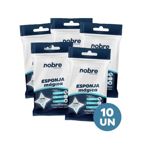 Esponja magica pacote c/10 unid. - Nobre Limpa com eficiência diversas superfícies, como paredes, pisos Utensílios de inox, louças sanitárias e vidros. Destaca-se também pela Remoção de riscos causados por giz de cera e lápis de cor. Antes de Utilizar, certifique-se de molhar a esponja e verificar sua limpeza, Evitando, assim, possíveis arranhões causados por partículas de Sujeira. Não recomendado para objetos escuros, superfícies polidas ou de alto Brilho. Sempre realize um teste prévio em uma área menor.