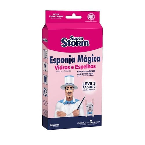 O melhor assistente para limpezas pesadas ecologicamente correto proporcionando resultados mágicos sem adição de produtos de limpeza, utilizando apenas água e não usamos embalagens plásticas. Super storm esponja mágica vidros e espelhos é ideal para limpar vidros e espelhos sem adição de produtos de limpeza. De forma prática, remove sujeiras e manchas em refrátarios de vidro e porcelana, mesas, boxes, janelas, sacadas, para-brisas de automóveis, fachadas, entre outras áreas, podendo também ser Utilizado para remover respingos de tintas laváveis sem riscar as superfíceis. Super storm esponja mágica vidros e espelhos proporciona resultados mágicos com pouca água. Contém: 3 esponjas mágicas na cor rosa. Modo de usar: 1 umedeça a esponja e aperte, com as mãos espalmadas, para remover o excesso de água. 2 esfregue-a, sem exercer muita pressão, sobre a superfície a ser limpa. Ao final do processo, a umidade pode ser removida com uma toalha limpa. 3 para remover as impurezas da esponja após a aplicação, enxágue a esponja em água corrente, remova o excesso e deixe secar. Importante: não é recomendado o uso de detergente, água sanitária ou qualquer tipo de produto de limpeza. Super storm esponja mágica vidros e espelhos é uma esponja descartável, e pode ser utilizada até que se desfaça completamente. A durabilidade do produto pode variar de acordo com a pressão, extensão e tipo de superfície a ser limpa. Composição: esponja de plástico expandido Super storm esponja mágica vidros e espelhos é ideal para limpar vidros e espelhos sem adição de produtos de limpeza. De forma prática, remove sujeiras e manchas em refrátarios de vidro e porcelana, mesas, boxes, janelas, sacadas, para-brisas de automóveis, fachadas, entre outras áreas, podendo também ser Utilizado para remover respingos de tintas laváveis sem riscar as superfíceis. Super storm esponja mágica vidros e espelhos proporciona resultados mágicos com pouca água.