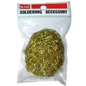 Esponja Metálica - Não abrasiva - Livre de água e oxidação da ponteira do ferro - Mantem a ponta sem crostas e prolonga vida útil do ferro Essa Esponja Metálica foi criada com o intuito de realizar a limpeza do ferro de solda, principalmente a ponta. Com a ponta do ferro de solda limpa facilita a fazer uma solda boa e ainda mantém protegido seu ferro de lixas ou pedras, que por sua vez removem a camada de níquel que reveste a ponta do ferro de solda e diminuem suas propriedades de aquecimento. A Esponja Metálica para Ferro de Solda é um acessório produzido em cobre de excelente qualidade. Não abrasiva e sem utilização de água, diminuindo a perda de calor e a oxidação da ponta, aumentando assim a vida útil do ferro de solda. Ean: 0789047336814