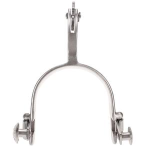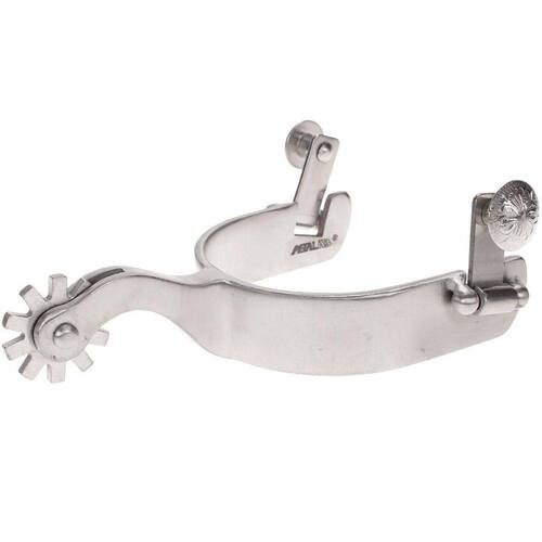 Par de esporas Metalab importadas modelo Performer All Around Mens Level 2, fabricadas em aço inox escovado, garfo com largura de 1'' (2,54cm), cão com 2-1/4'' (5,71cm) de comprimento e rosetas de 10 pontas. Fino acabamento.