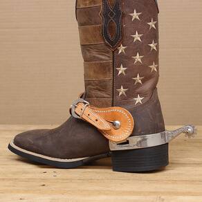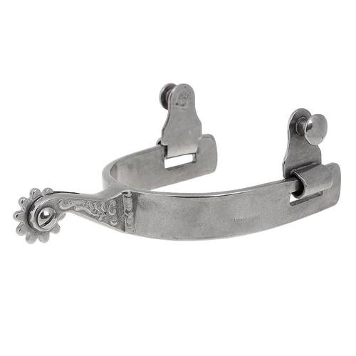 Espora Vinagre fabricada em Aço Inox. Possui cão com detalhes gravados na lateral e roseta de 10 pontas.