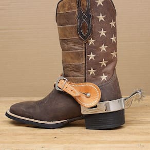 Espora Quarto de Milha Bronc-Steel fabricada em aço inox, possui cão reto e roseta de 10 pontas.