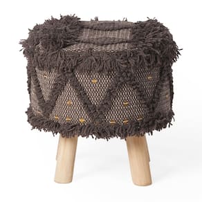 Pufe de pés Benjara, design boho feito à mão, assento de tecido marrom, madeira