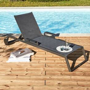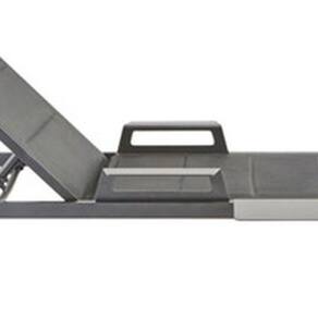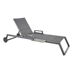 Espreguicadeira em aluminio reclinavel com 4 posicoes, cor cinza, da colecao Odyssea II da marca Naterial, com estrutura de metal, assento e encosto em textilene, capacidade de peso de 160 Kg, dimensoes de 87,5x89x222 cm, peso de 13,50 Kg, acompanhada de 2 rodas, desmontada, com garantia de 60 meses para defeitos de fabricacao, proporcionando maior resistencia, durabilidade e conforto.