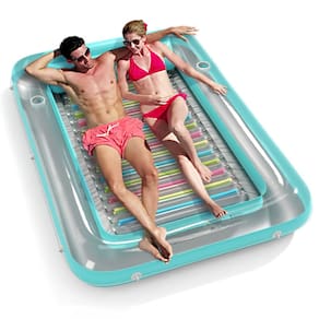 Piscina de bronzeamento inflável Lounge Float Adults Kids - 4 em 1 relaxante espreguiçadeira reclinável Raft Float Tanner Piscina para banhos de sol para bebês e crianças Blow Up Blow Up Ball Pit Pool - Base confortável de travesseiro e almofada de ar - A piscina de bronzeamento inflável é um travesseiro removível integrado e uma base de almofada de ar nervurada. Almofada para maior apoio ao pescoço. Base de almofada de ar para maior conforto. Projetado para a melhor experiência de descanso, relaxamento, banho de sol e muito mais. - Piscina tudo em um - tapete de bronzeamento, piscina pessoal, flutuador de piscina, espreguiçadeira, lago flutuador, piscina de bolas, tudo em um. Aproveite-o sob medida para sua necessidade. Você pode usá-lo em seu quintal, na água ou na praia, etc. - Encha a água e mantenha a calma - Encha a banheira de banho de sol com água, deite-se e bronzeie-se na água sem se aquecer demais. Desfrute de um banho de sol e relaxe. - Estabilidade adicional - Integrado com uma corda envolvente para manobrabilidade flutuante, amarre a outros flutuadores ou convés e divirta-se! - 2 porta-copos embutidos - Tenha bebidas por perto enquanto aproveita o sol se bronzeando ou flutuando. - Base refletiva - Garanta a máxima exposição aos raios UV - Vinil premium - O flutuador da piscina de bronzeamento é feito de material não ftalato pesado, espesso, macio e premium para jangadas. É fácil de limpar, inflar, esvaziar e armazenar. - Dimensões: 80 polegadas de comprimento e 56 polegadas de largura. Garantimos a qualidade deste flutuador e temos o prazer de oferecer uma garantia do fabricante de 6 meses sem nenhum custo adicional.