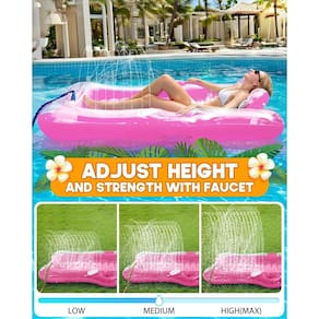 - ?Resfriamento automático em spray?Ainda está tendo problemas com sua cama flutuante esquentar enquanto você está tomando sol? Com nossas novas camas flutuantes atualizadas que pulverizam automaticamente para resfriar você, basta conectar a mangueira e aproveitar seu banho de sol.