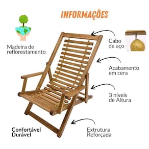 Desfrute do máximo relaxamento ao ar livre com a Espreguiçadeira de Madeira Reforçada. Com design elegante e estrutura resistente, ela garante conforto e durabilidade para você aproveitar momentos de descanso em seu jardim, varanda ou quintal.