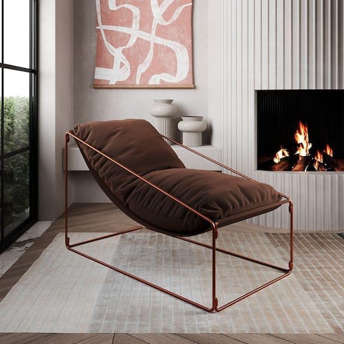 Espreguiçadeira Industrial Arpoador Com Almofada Cobre E Marrom - Cor: Marrom