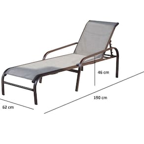O design slim da espreguiçadeira confere um visual moderno e elegante ao ambiente. Além disso, sua manutenção é simples, tornando-a uma escolha prática para quem deseja desfrutar de momentos de lazer ao ar livre. Essa espreguiçadeira é perfeita para criar um espaço relaxante e convidativo, ideal para aproveitar dias ensolarados ou momentos de descanso. Acompanha Almofada: Não Altura do Assento: 32,5 cm Ambiente Principal: Jardim e Varanda codigo_ean: 7900288144003 Comprimento: 190 cm Cor: Marrom/Bege Cor do Produto: Marrom/bege Encosto Reclinável: Sim Itens Inclusos: 1 Espreguiçadeira Slim Linha ou Coleção: Slim Marca: Art & Luxo Material da Estrutura: Alumínio Material do Assento: PVC Necessita Montagem: Não Origem do Produto: Nacional Peso: 8 kg Possui Rodinhas: Não Quantidade de Posições que Inclina: 06 Posições Recomendações de Uso, Manutenção e Limpeza: Pano unido Resistência à Chuva: Sim Resistência à Maresia: Sim Resistência ao Sol: Sim Suporta Até: 120 kg