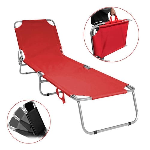 Material: Poliéster revestido de PVC e ferro Peso máximo suportado: 100Kg Reclinação Ajustável - Escolha a inclinação perfeita para o seu conforto. Resistente - De alta qualidade para suportar todas as suas aventuras. Portátil e Dobrável: Leve-a para onde quiser, sem esforço. A cadeira se dobra facilmente.