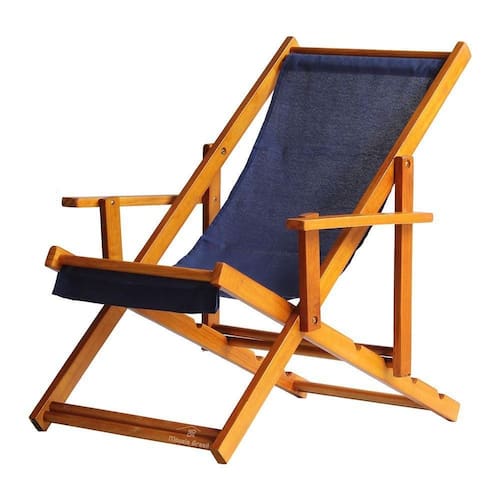 Espreguiçadeira Preguiçosa Dobrável Mel Cb-azul Marinho ESPREGUIÇADEIRA EM MADEIRA MACIÇA COM BRAÇOSabe aquele final de tarde que você tanto espera para tirar um descanso merecido? Ou aquela viagem para a praia programada a meses com a família? Pois é, nossas cadeiras espreguiçadeira serve exatamente para esses momentos, com várias opções de cores, os tecidos além de charmosos são hidro-repelentes e se adequam a qualquer ambiente, facilmente removíveis para higienização.Estrutura 100% de madeira maciça de ótima qualidade, a espreguiçadeira é totalmente dobrável e reclinável (4 posições de ângulo), com descanso para braço, sendo possível montar invertida sem o encosto de braço, perfeita para seu lazer em todos os ambientes, esse é o item que definitivamente não pode faltar na vida de quem de fato, quer aproveitar bons momentos! FICHA TÉCNICA DO PRODUTO:04 Níveis de Regulagem de Altura;Tecido Reforçado;Fabricada em Madeira Maciça Pinus;Peso aproximado: 7,5 Kg;Suporta aproximadamente 120 kg;Cor da Madeira: Mel Dimensões aproximadas do Produto:Altura 1: 69 cm;Altura 2: 82 cm;Altura 3: 91 cm;Altura 4: 100 cm;Profundidade: 105 cm. Dimensão aproximada total:Comprimento: 135 cm;Largura: 66 cm; Informações Adicionais:Garantia: 90 dias contra defeitos de fabricação.Acompanha 2 cadeiras Obs. A cor pode variar da foto conforme a tonalidade da madeira e iluminação.. !! Marca: Brasil Móveis