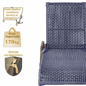 Produto conhecido como: Espreguiçadeira reclinável, Espreguiçadeira em alumínio, Espreguiçadeira com encosto ajustável, Espreguiçadeira para área externa, Espreguiçadeira para piscina, Espreguiçadeira resistente ao tempo, Espreguiçadeira moderna, Espreguiçadeira confortável, Móveis para área externa, Móveis de alumínio para jardim, Corda náutica para móveis, Espreguiçadeira leve e durável, Design sofisticado para áreas externas, Decoração para varanda e piscina, Espreguiçadeira resistente ao sol e chuva