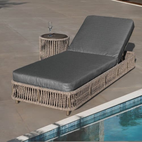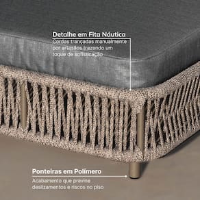 Nossos móveis de jardim são uma combinação perfeita de modernidade e funcionalidade, apresentando estruturas de linhas simples e tramas lineares e minimalistas em fita náutica. Este acabamento, manualmente elaborado por artesãos, acrescenta uma sofisticação incomparável a cada peça, tornando-as únicas.