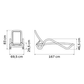Mais informações - Peso Máximo Recomendável: 140 kg.Material: Resina de polipropileno injetado.Tela: PVC e poliéster com proteção anti-uv.Empilhável até: 10 peças.Inclina até: 4 posições.Com Compartimento e Rodas.Resina Reciclável.