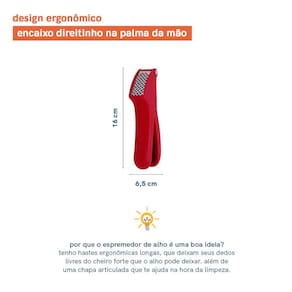 ":: Esse é o espremedor de alho da OIKOS. :: Chapa articulada e higiênica: basta pressionar a chapa no sentido oposto da saída do alho triturado, assim ela desencaixa sem soltar, mais fácil de limpar. :: Design ergonômico: por ter hastes ergonômicas e longas, esse espremedor encaixa direitinho na palma da mão e mantém seus dedos livres do cheiro forte que o alho pode deixar.