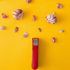 cotidica: Você também pode triturar bastante alho de uma só vez e armazenar num pote hermético na sua geladeira, dura por meses! Basta misturar o alho espremido com óleo ou azeite de oliva - se quiser, pode fazer cubinhos numa forma de gelo também."