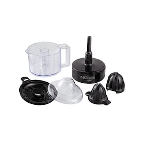 Espremedor de frutas Black+Decker com jarra de 800ml, potência de 30W, filtro de polpa ajustável e cones para diferentes frutas.Motor c/ dupla rotação