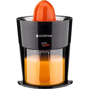 Espremedor de frutas Cadence com acionamento automático, cone de reversão, jarra de 850ml, peneira em aço inox e tampa para armazenagem.Motor c/ dupla rotação