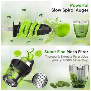 Espremedor de frutas COZII Cold Press com motor silencioso, bocal largo de 9,14 cm, ideal para sucos naturais e saudáveis, extração suave de nutrientes, design fácil de limpar e função reversa.Vendido e entregue por Ecletiq