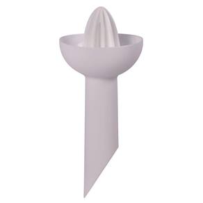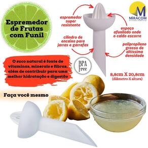 Espremedor de frutas com funil acoplado em uma peça única.