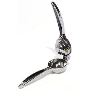 Descrição Contém: 01 Espremedor De Limão Aço Inox Maciço O Espremedor De Limão Aço Inox Maciço não é chapa . Uma forma prática, rápida e higiênica de espremer o limão diretamente sobre o prato. Robusto e eficiente. Não passa resíduos para os alimentos. Fácil de limpar. Não acompanham acessórios. Validade indeterminada. Dimensões 20 x 6 x 4,5 cm. Peso 320 g. Material: Aço inox maciço super resistente e de ótima qualidade