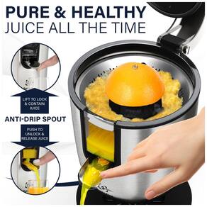 Características Gerais do produto Espremetrosedor de frutas cítricas elétrico cometros metrosotor de 160W, elevação de bico de bloqueio, fácil de usar e limetrospar, cometros ventosas para fixação.