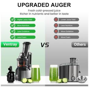 Espremedor de sucos Ventray 240W, função reversa anti-entupimento, velocidade lenta de 65 RPM, material sem BPA, boca de alimentação larga, recipiente de suco selado.