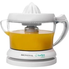 Espremedor de sucos Mondial com potência de 25W, jarra de 1,25 litros, motor síncrono, acionamento automático e guarda-fio.Motor c/ dupla rotação