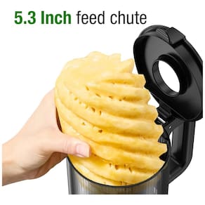 Adequado para Frutas e Legumes Inteiros: Nossa calha de alimentação totalmente atualizado de 13,5 cm é maior do que o normal, permitindo que você adicione frutas e legumes inteiros sem picá-los. Economize tempo e extraia mais suco com facilidade.