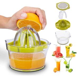 4 funções em 1: espremedor manual, ralador, separador de gemas e, finalmente, copo com medida. Dessa forma, essa ferramenta se torna uma ferramenta essencial para a cozinha. O recipiente tem capacidade de 400 ml/12 onças, além de uma borracha que evita que o suco recém-espremido caia. É removível e fácil de lavar. Por não exigir conexão elétrica, ele pode ser utilizado em qualquer lugar. Excelente relação preço-qualidade.