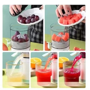 maior rendimento do suco com velocidade lenta, ele fornece o sabor puro da fruta. Fácil de limpar e usar todas as peças são descartáveis e fácil separação para limpeza. Recarregável usb, sem fio e portátil, suco a qualquer hora e em todo lugar. Faça sucos apertando apenas um botão economize tempo e esforço sem necessidade. Esprema todas em movimento 360, separação de resíduos maior aproveitamento da fruta. Poder ser utilizado para sucos de laranja, maças, abacaxi, morango, limão, manga, entre outros. Como usar: