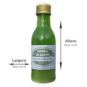 Espuma banho ilê wurá alecrim e erva doce 120ml banheira spa Espuma de banho alecrim e erva doce Ideal para lembrancinhas, eventos, festinhas, hidro, jacuzzi, banheira, ofurô, spa, hidromassagem, hidroterapia, hotel, massagem, namorados, pousada, relaxante, resort Conteúdo da embalagem: 1 frasco de 120ml Não testado em animais Indicado para todos os tipos de pele Desfrute de um banho revigorante e relaxante Mergulhe em uma experiência única com a espuma de banho ilê wurá, cuidadosamente elaborada para proporcionar momentos de puro prazer e cuidado. - alecrim: conhecido por suas propriedades estimulantes e revigorantes, o alecrim desperta os sentidos e energiza o corpo, aliviando o cansaço do dia a dia. - erva doce: com seu aroma suave e adocicado, a erva doce acalma e relaxa, promovendo uma sensação de bem-estar e tranquilidade. -----benefícios que você vai amar----- . Pele macia e perfumada: sua fórmula delicada limpa sem ressecar, deixando a pele incrivelmente suave e com uma fragrância deliciosa que dura por mais tempo. . Espuma abundante: crie um banho de imersão perfeito com uma espuma rica e cremosa que envolve seu corpo em um abraço de conforto. . Momento de relaxamento: transforme seu banheiro em um verdadeiro spa, ideal para aliviar o e renovar as energias. . Praticidade: embalagem perfeita para o uso diário ou para levar em viagens. -----modo de uso----- No chuveiro: aplique em uma esponja e espalhe pelo corpo. Na banheira: dissolva uma pequena quantidade ou todo o frasco e agite até obter a espuma desejada. -----recomendações e cuidados----- Mantenha em local arejado, fora do alcance de crianças e longe do calor excessivo. Em caso de irritação, suspenda o uso e consulte um médico. Apenas para uso externo. Evite o contato com os olhos; em caso de contato, enxágue abundantemente com água. Não utilize se a pele estiver irritada ou lesionada.