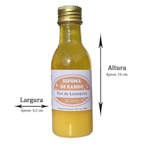 Espuma banho ilê wurá flor de laranjeira 120ml spa hidro Espuma de banho flor de laranjeira Ideal para lembrancinhas, eventos, festinhas, hidro, jacuzzi, banheira, ofurô, spa, hidromassagem, hidroterapia, hotel, massagem, namorados, pousada, relaxante, resort Conteúdo da embalagem: 1 frasco de 120ml Não testado em animais Indicado para todos os tipos de pele Transforme seu banho em um verdadeiro ritual de relaxamento com a espuma de banho ilê wurá flor de laranjeira 120ml. Sinta a delicadeza das bolhas e deixe-se envolver pelo aroma suave e da flor de laranjeira, perfeito para: . Hidratar e suavizar a pele: fórmula suave que limpa sem ressecar, deixando sua pele macia e aveludada. . Criar um ambiente de spa em casa: permita-se um momento de autocuidado e bem-estar, elevando sua rotina de banho. Mais do que uma espuma, é um convite ao bem-estar e à tranquilidade. Com uma fragrância envolvente e propriedades que cuidam da sua pele, este produto é ideal para quem busca: . Pele macia e perfumada: limpeza delicada que deixa um toque sedoso e um perfume delicioso que dura. . Sensação de leveza: a espuma abundante e a essência natural promovem uma experiência de banho revigorante. Modo de Uso: No chuveiro: aplique em uma esponja e espalhe pelo corpo. Na banheira: dissolva uma pequena quantidade ou todo o frasco e agite até obter a espuma desejada. Recomendações de Uso: Mantenha em local arejado, fora do alcance de crianças e longe do calor excessivo. Em caso de irritação, suspenda o uso e consulte um médico. Apenas para uso externo. Evite o contato com os olhos; em caso de contato, enxágue abundantemente com água. Não utilize se a pele estiver irritada ou lesionada.