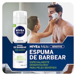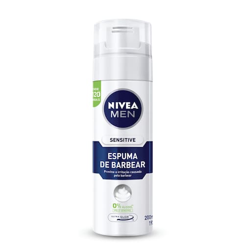 A Espuma De Barbear Nívea Men Sensitive tem propriedades calmantes, sendo indicado para peles sensíveis. Possui fórmula sem álcool etílico, livre de corantes e conservantes. Além disso, amacia o pelo da barba e ainda protege a pele, sem deixar a sensação de ardor no rosto.