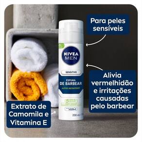 Além disso, ela oferece alívio instantâneo da irritação da pele. NIVEA MEN Espuma de Barbear Sensitive tem uma fragrância neutra e é dermatologicamente testada. Experimente e melhore os cuidados com sua pele!