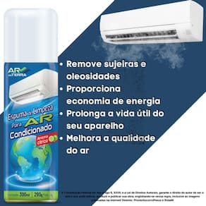 A Espuma de Limpeza para Ar Condicionado Ar da Terra foi desenvolvida para limpeza dos dutos dos sistemas de ventilação e refrigeração em ambientes domésticos, institucionais e escritórios. Removendo as sujeiras e oleosidade do interior do sistema, proporcionando maior economia de energia e prolongando a vida útil do seu aparelho gerando um melhor desempenho e uma melhor qualidade do ar.