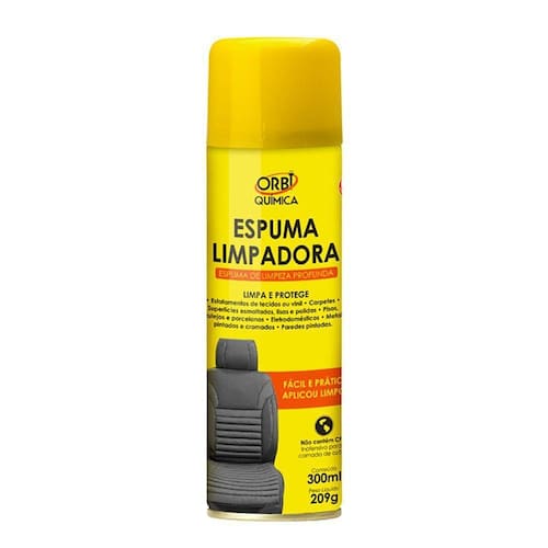 Espuma Limpadora Orbi Limpa Estofados Orbi Quimica Informações do Produto Espuma Limpadora ? Limpeza Profunda é um limpador multiuso, remove sujidades comuns em bancos de veiculos, sofá, carpete, painel. Limpa e não agride. Recomendado para limpeza de estofamentos de tecidos ou vinil, carpetes, superficies esmaltadas, lisas e polidas, pisos e cromados. Ideal para limpar partes externas de eletrodomésticos, metais pintados, azulejos, loucas sanitárias, porcelanas e paredes pintadas. Composição Tensoativo aniÔnico e catiÔnico, fragrÂncia, anticorrosivos, corante, espessante, alcalinizante, conservante e veiculo.