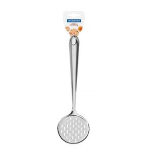Espumadeira Tramontina Utility Em Aço Inox Uma mesa bem-posta é uma presente que todo mundo pode se dar todosos dias. Talheres e acessórios brilhantes, uma toalha bonita e pequenostoques de decoração tornam qualquer momento mais especial. Afinal, umaboa refeição deve ser saboreada também com os olhos. Recomendações de Uso: Antes do uso: Antes de utilizar o , remova as eventuais etiquetas e lave-o com água quente e de uso:Durante a lavagem use somente esponja macia, outros tipos de produtos, como palha de aço, poderão riscar ou prejudicar o brilho do produto. Enxágue bem a peça a fim de remover totalmente os resíduos dos produtos de limpeza, que por serem abrasivos, podem danificar o inox. Após a lavagem enxugue-o, pois as substâncias químicas contidas na água poderão causar manchas. Sempre que possível use água quente, pois renova o brilho do produto. Evite o da peça com superfícies quentes, pois podem provocar a descoloração do produto. Quando usar a máquina de lavar louça, recomendamos retirar o produto logo que tenha terminado o ciclo enxaguar, a fim de que o mesmo seja secado manualmente.- Foto meramente ilustrativa. Informações Adicionais: