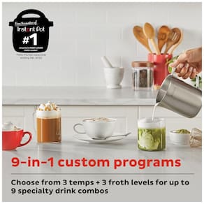 Transforme suas manhãs com a Máquina de Espumar Leite Instant Pot. Crie microespuma de qualidade de cafetaria para matcha, lattes, cappuccinos e muito mais. Com 9 programas personalizáveis, 3 configurações de temperatura e 3 níveis de espuma, você poderá preparar bebidas personalizadas em segundos. Seja seu próprio barista, criando espumas de leite quentes e frias de diferentes consistências para elevar seu café do dia a dia a criações dignas de cafeterias. Com um grande recipiente removível de 500ml em aço inoxidável, você pode espumar até 250ml de leite ou aquecer até dois copos de 240ml de leite de uma só vez. Além de espumar leite, a máquina permite preparar rapidamente bebidas com base em água. Com controle simplificado de 4 botões, display grande e design compacto, a Máquina de Espumar Leite da Instant Pot é a solução perfeita para suas necessidades de café.