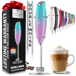 FAÇA UMA ESPUMA RICA E CREME EM SEGUNDOS Nós, amantes de café, levamos a sério quando se trata de nosso café. O Batedor Milk Boss dá aquele toque final profissional ao seu latte, cappuccino, macchiato ou chocolate quente. Faça um delicioso creme espumoso para suas bebidas em casa sem precisar ir a uma cafeteria com seu próprio batedor de leite. Os benefícios de ter seu próprio batedor elétrico para bebidas são infinitos, você pode fazer seu próprio melhor café com leite, você conhece melhor seus gostos. MATCHA WHISKING, CAFÉ E MAIS Funciona melhor do que um batedor matcha manual para fazer chá matcha e funciona muito melhor do que garfo ou batedor para café. Funciona muito bem para misturar bebidas nutritivas em pó de proteína sem recipiente extra, liquidificador ou agitador de garrafa para lavar. Use nosso mini mixer para suas necessidades de bater e misturar Dê um chute saudável em shakes e smoothies adicionando pó ou sabor de gemada e misturando. QUALIDADE COMPROVADA E CONFIÁVEL Usamos apenas materiais premium. Nosso batedor de leite duplo não enferruja nem quebra, nunca. Construído para durar. Nosso pequeno e eficiente bocal funciona em todos os tipos de leite meio a meio, creme, soja, amêndoa, caju, avelã, leite integral e outros laticínios, como manteiga ou creme. FÁCIL DE LIMPAR E ZENAR O suporte de metal durável e conveniente oferece fácil acesso para produtos espumosos em segundos. A limpeza deste matcha wisk espumante é ainda mais rápida. Para limpar, basta colocar o batedor em água corrente quente e ligá lo brevemente limpa instantaneamente Quando zenado no balcão ou na mesa, fica bem ao lado de outros acessórios de café. Nosso batedor de leite portátil poderoso e durável é alimentado por duas pilhas AA não incluídas com um design elétrico compacto que cabe facilmente em uma gaveta Marca: Não Informado