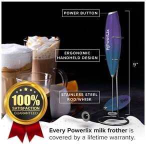 Obtenha espuma cremosa rapidamente PowerLix traz para você seu pequeno batedor de leite portátil portátil para espuma de leite. Se você adora seu café da manhã com muita espuma e espuma, então certamente deseja ter a varinha de espuma PowerLix em casa ou seu cappuccino estilo café. Grande stuffer de meia stuffers para homens, meia stuffers para mulheres. Ele vem com acessórios de suporte para fácil zenamento e pode ser mantido na bancada. Operado por bateria para espuma perfeita em pouco tempo O mixer portátil é alimentado por bateria para que você não precise se preocupar com cabos e encontrar soquetes. Aqueça o leite, mergulhe a máquina de café expresso na chávena e ligue a. Esta batidora de mano começará a criar uma espuma cremosa no leite instantaneamente. Dentro de 15 a 20 segundos, você tem uma xícara cheia de espuma cremosa e pronta para entrar no seu café com leite. Qualidade em que você pode confiar Nosso fabricante de frappe de batedor de leite é feito de aço inoxidável da melhor qualidade. Ele tem um motor poderoso que lhe dá 19000 rpm e o batedor espiral de aço inoxidável durável de mola dupla durável 18, 10 de material para alimentos que não enferruja ou quebra ao longo do tempo, oferece o dobro da potência de outros espumadores e fabricantes de café expresso profissionais disponíveis. O botão liga , desliga na parte superior facilita o uso. O motor de baixo ruído quase não faz barulho. Lindamente estilizado com versatilidade grandes stuffers de meia para homens, stuffers de meia para mulheres, presentes de elefante branco, presentes de Natal. A máquina é lindamente estilizada na cor turquesa roxa para caber em qualquer cozinha moderna. É leve e possui alça de toque suave ergonomicamente projetada. Fácil de usar e fácil de limpar. Esta batidora de mano pode ser usada para espumar outros líquidos além do leite quente. Use o para fazer milkshakes para seus filhos ou coquetéis para seus amigos Marca: Não Informado